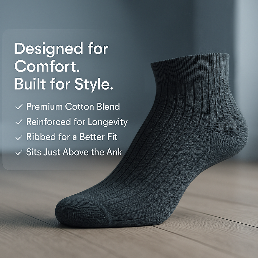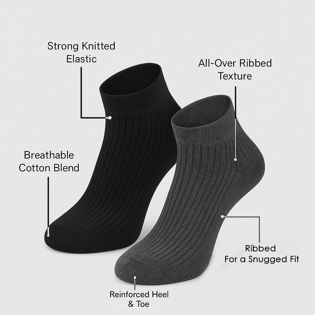 Arctic Wolf Men's Ribbed Ankle Length Socks (Pack of 6, 8 & 12 Pairs)