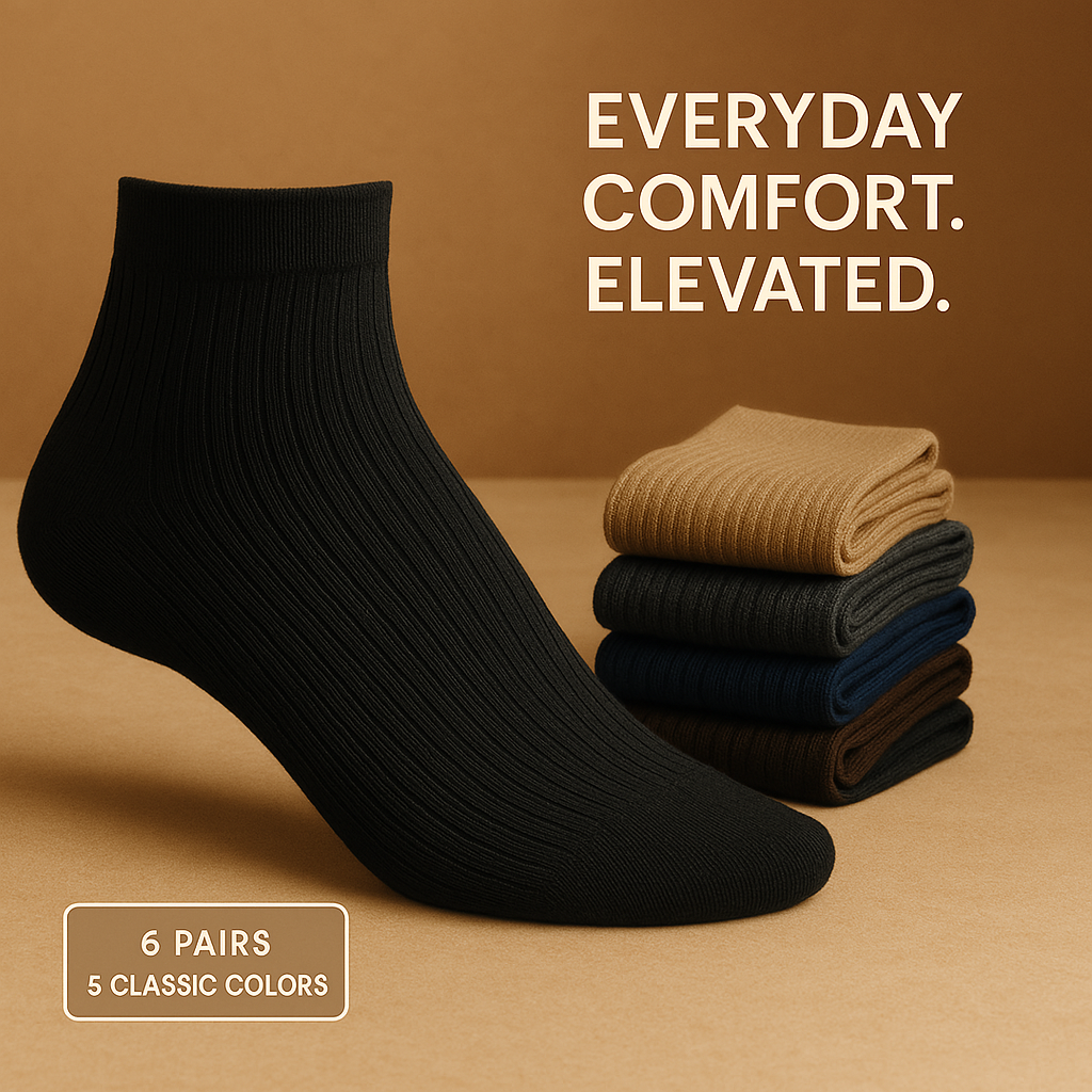 - Pack of 6 Pairs: 3 Black, 1 Dark Grey, 1 Navy Blue & 1 Light Grey